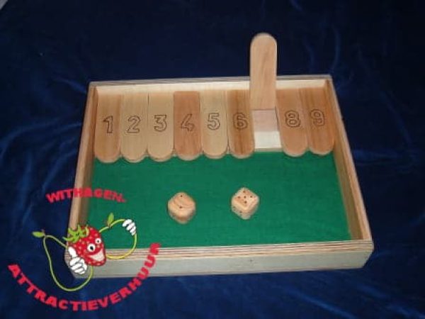 Als je een spel huurt bij Withagen-attractieverhuur krijg je altijd een duidelijke handleiding mee. Maar hoe speel je alle negen? Aan de hand van twee dobbelstenen kunnen de cijfers dichtklappen. De som van de ogen op de dobbelsteen moet ook met de getallen op het speelveld gemaakt worden door deze omhoog of omlaag te zetten. De winnaar is degene die het eerst alle cijfers dicht krijgt, of degene die de minste punten over houdt nadat je niet meer kan. Hiermee train je ook hoofdrekenen!