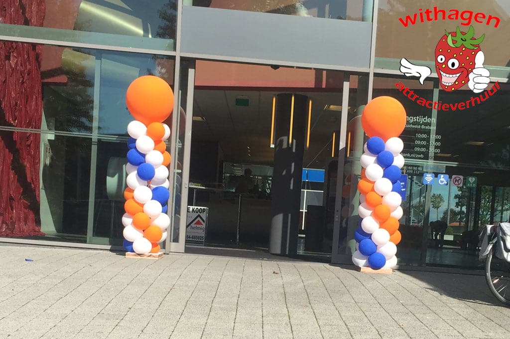 Een ballonnenpilaar bij de ingang is natuurlijk het mooist wanneer de kleuren aansluiten bij de huisstijl van het bedrijf. De opdrachtgever van deze ballonnenpilaar in de kleuren Blauw/Wit/Oranje is dan ook niet moeilijk te raden. Speciaal voor de Rabobank maakten we deze ballonnenpilaar. Maken we de volgende voor u? Kijkt u op de site voor de mogelijkheden of neem contact op.