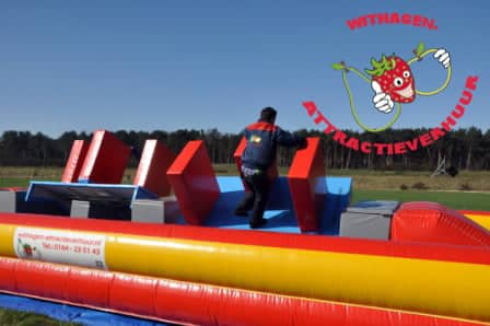 Tijdens zeskampen worden er steeds vaker een wipeout attractie of andere leuke spelkussens ingezet. Withagen-Attractieverhuur is dan ook steeds bezig met het ontwikkelen van nieuwe spelkussens voor zeskampen en wipeout. Zo waren wij in 2010 de eerste in Nederland die de wipeout mega balls aanboden. Natuurlijk voldoen deze kussens en attracties aan alle veiligheids- en keuringseisen die in Nederland en België gelden. Bij ons vind je altijd de nieuwste en leukste attracties.Een complete Wipe-Out baan huren.